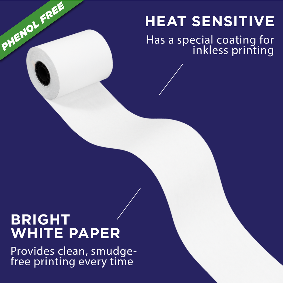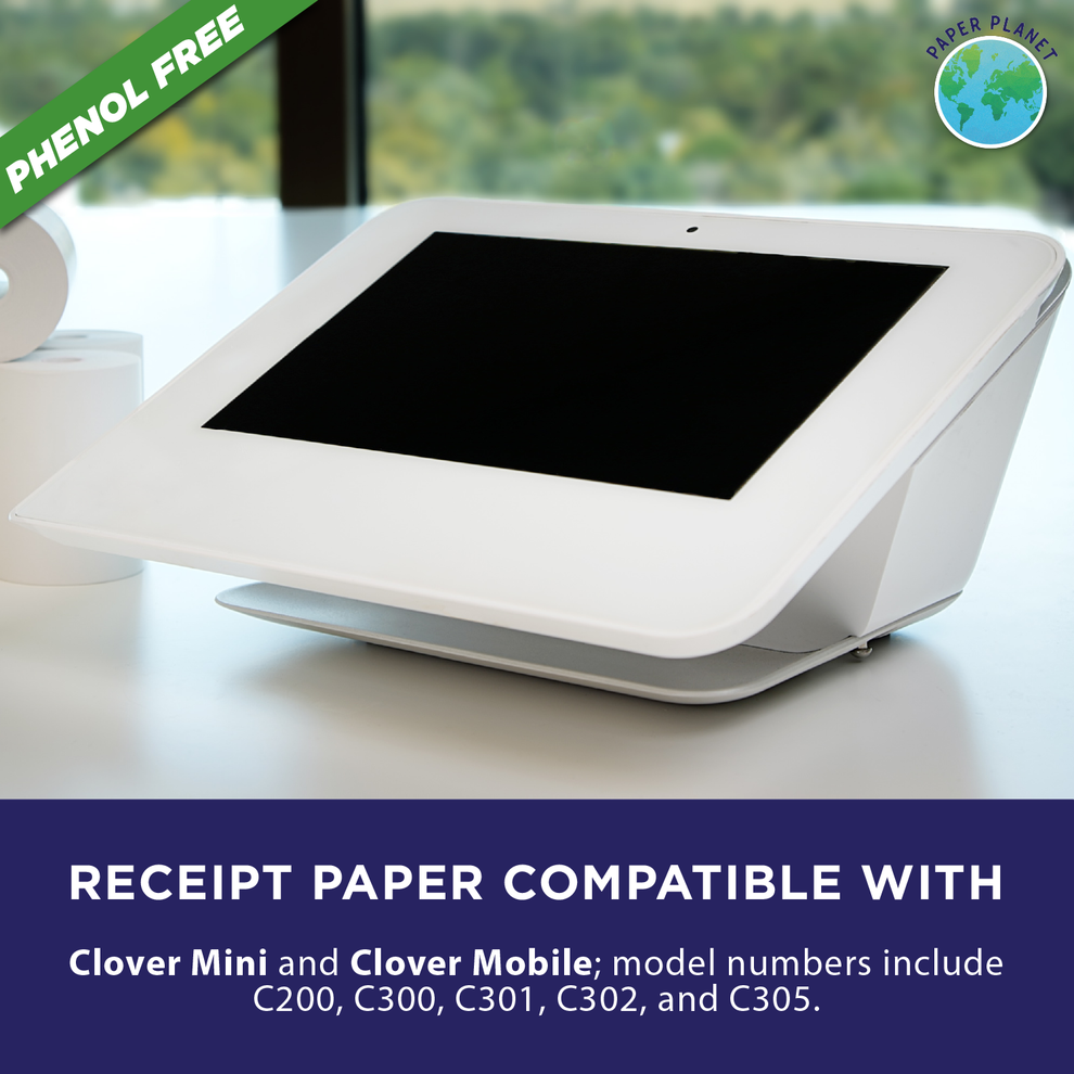 We are proud to offer high-quality, BPA and BPS-free (phenol-free) thermal paper rolls designed for inkless receipt printing, ensuring clear, crisp, and smudge-free prints. These bright white rolls provide more prints per roll than standard paper, reducing the frequency of changes, and feature a pink warning mark to indicate when replacement is needed. Perfectly fitted for Clover Mini receipt printer systems (models C200, C300, C301, C302, and C305), our thermal paper is a safe and responsible choice, manufactured with a commitment to consumer safety and environmental responsibility. To maintain quality, store the paper in a cool, dark environment away from oils, plastics, chemicals, and fats.