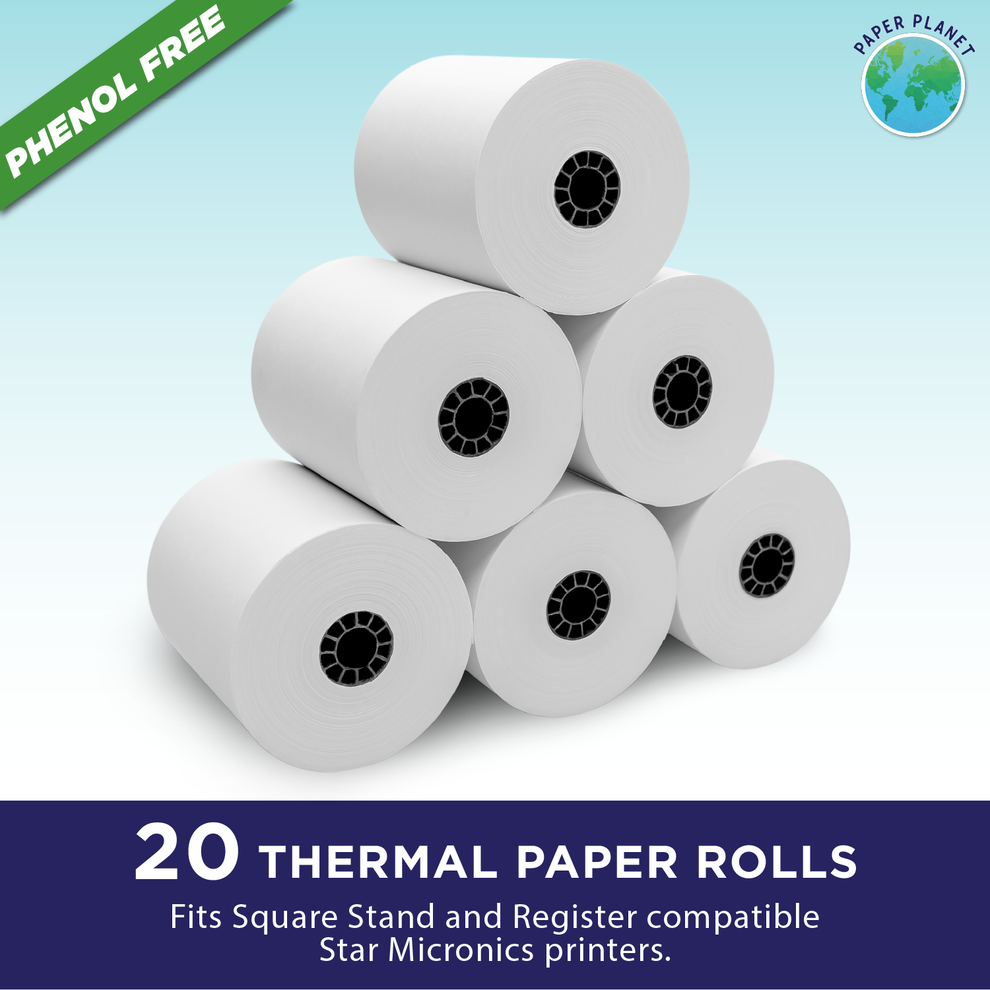 Phenol Free (BPS Free & BPA Free) Thermal Rolls for Square Register | 20 Rolls