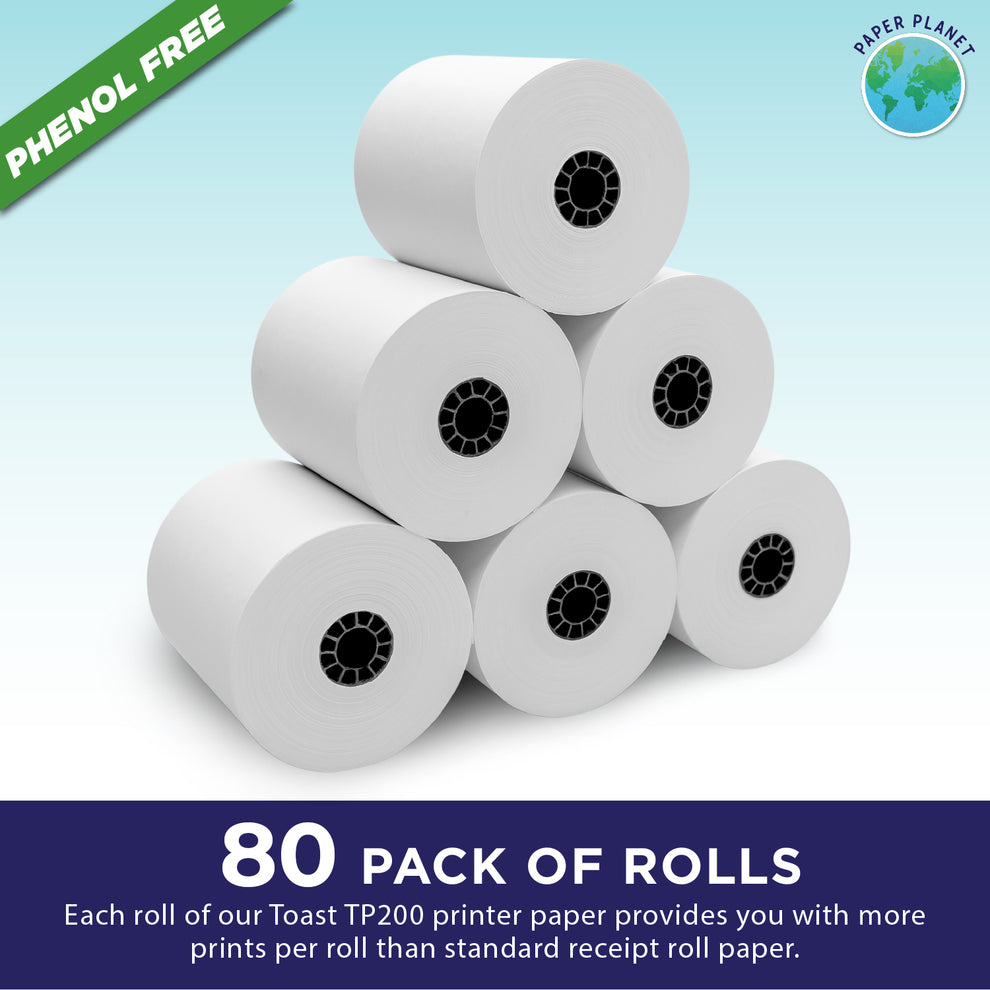 Phenol Free (BPS Free & BPA Free) Thermal Paper for Toast TP200 | 80 Rolls